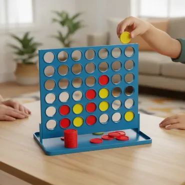 Design Lúdico e Reconhecível: Representação fiel do clássico jogo de ligar quatro, com a grade vertical e as peças nas cores primárias, conferindo um visual alegre e familiar ao ambiente.