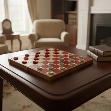 • Estética Clássica: O conjunto de damas é um elemento que remete à tradição e sofisticação, com o tabuleiro e as peças nas cores contrastantes.