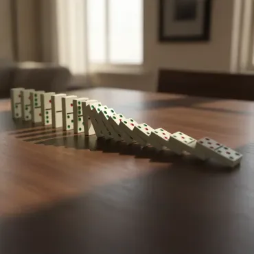 • Composição Dinâmica: O jogo de dominó é apresentado em uma sequência de queda, o que adiciona um elemento visualmente interessante e narrativo ao projeto.