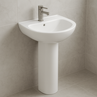 Lavatório sanitário paramétrico, disponível em dois tipos (com pedestal e sem pedestal), desenvolvido para compor projetos de banheiros e lavabos. O modelo acompanha torneira integrada e estrutura versátil que se adapta a diferentes propostas de interiores, oferecendo solução visual limpa e funcional para ambientes residenciais e comerciais.