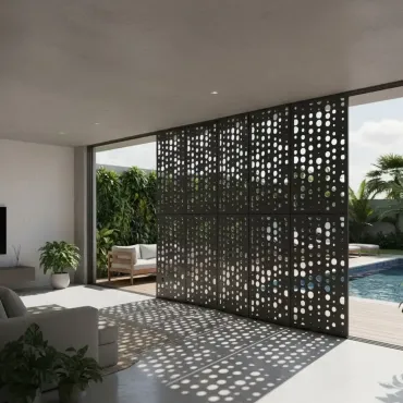 • Permeabilidade Visual Controlada: Transparência parcial que separa ambientes sem comprometer luminosidade.