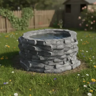 Sinônimos: Cisterna decorativa, poço de pedra, poço de jardim, poço rústico, poço artesiano decorativo, fonte de água rústica.