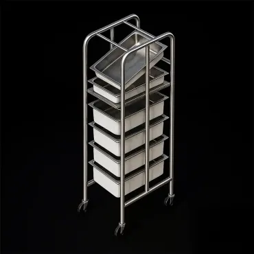 Sinônimos: rack médico BIM, medical storage rack Revit, organizador hospitalar, rack vertical de cestos, armário de insumos médicos, medical supply rack BIM
