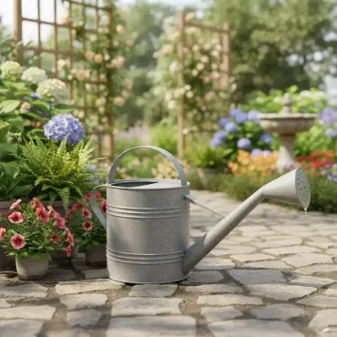 Estilo Clássico: O design do regador remete a um estilo tradicional e rústico (metálico), ideal para compor ambientes de paisagismo com charme.