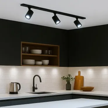 Cozinhas e Áreas Gourmet: Ideal para iluminação direcionada em bancadas e áreas de preparo.