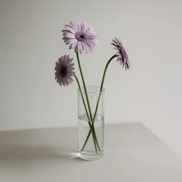 Vaso decorativo em vidro cilíndrico contendo três margaridas, ideal para humanizar ambientes e trazer um toque de leveza às composições. Esse elemento adiciona naturalidade e sutileza a projetos residenciais, comerciais e corporativos, criando atmosferas acolhedoras e visualmente equilibradas.